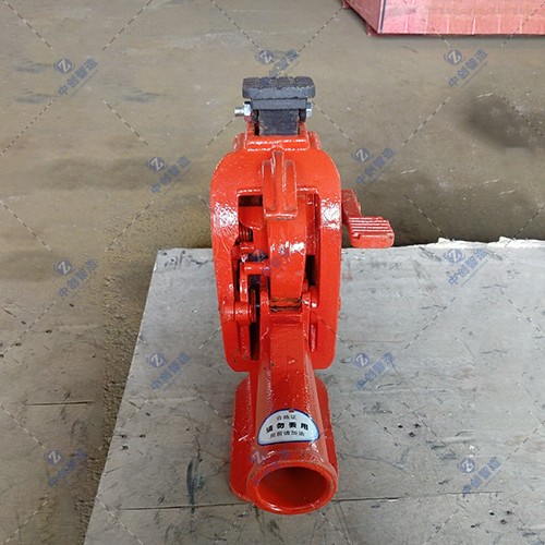 慢降操作——當起重后需要降低一、兩齒的高度時,其操作為:將撬棍帶動搖降4往下壓,使制動齒板5脫離齒條7不負載,往后拉開制動齒板6,慢慢放松撬棍使齒條7下架一齒,然后放松制動齒板5使其齒入齒條7上一齒,放松撬棍使制動齒板受力,此時起動齒板不受力,再輕輕抬起撬棍,拉開起動齒板11使其齒尖 入齒條7上一齒。這樣,就完成了起重物下降一齒高度的操作。以此類推,即了實現(xiàn)逐齒慢降。