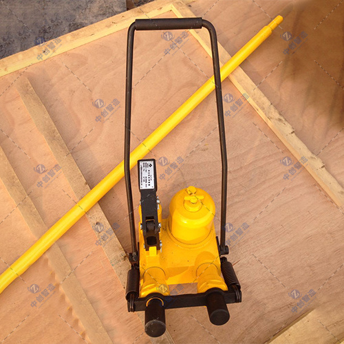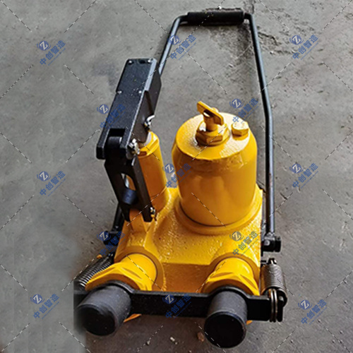 1、進行改道作業時,先將鋼軌兩側扣件螺母放松,然后將軌距調整器放入混凝土軌枕軌肩部位,使機具底座與軌肩相接觸,扣件螺栓位于兩只液壓缸中間,不會與機具相干涉。作業時,先順時針方向鎖緊回油閥桿,然后撳動柱塞泵,用兩只頂頭頂住鋼軌軌腰來實現軌距調節(即改道)作業。在鋼軌魚尾板連接處進行改道作業時,先松開與機具發生干 涉的魚尾板連接螺栓,然后調換兩只短頂頭(隨機附件)頂住魚尾板,按3上述方法進行操作。改道作業完畢后,逆時針方向旋松回油閥桿,在彈簧力的作用下兩只頂頭會自動復位,然后將機具取下并擰緊鋼軌兩側扣件螺母。如果改道量較大,可根據需要將相鄰一組或幾組軌枕上扣件螺母松開。