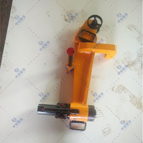 (3)、將液壓動力部份放置在鋼軌需要調直(彎曲)方向的對側。并使油缸頂頭和偏心手輪與鋼軌軌頭緊密接觸;