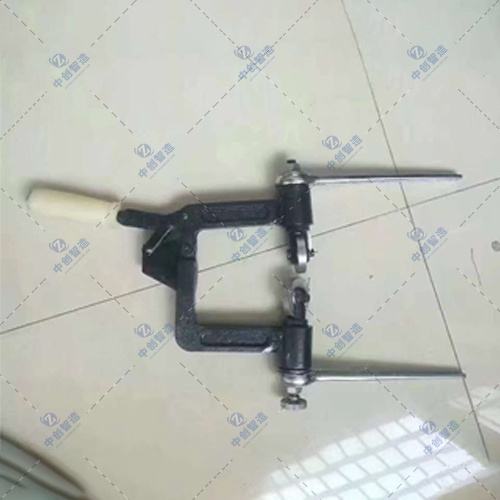 當前位置:網站首頁 >> 鐵路工具 DJQ-Ⅱ型雙邊倒角器是用于對鐵路鋼軌軌腰上的孔進行倒角。雙邊倒角器其結構:它有一個門形框架,由左支架和右支架通過一套四連桿機構鉸鏈而成,鎖緊桿上端裝有手柄,左支架下端的軸套中裝左軸,左軸右端裝有圓盤狀刀片,左軸左端裝有棘輪扳手,右支架下端的軸套中裝有右軸,右軸上套裝一個壓緊彈簧,右軸左端裝有圓盤刀片,右軸右端裝有棘輪扳手。雙邊倒角器結構簡單,使用方便,工作效率高,其刀片呈圓盤狀,整個圓周上的刀刃鋒利耐磨,使用壽命長等優點。