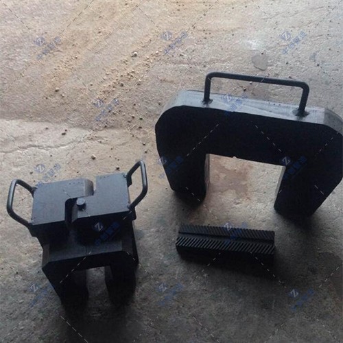 該撞軌器主要應用于鐵路長鋼軌在進行無縫線路聯合接頭焊接施工、無縫線路應力放散時,用“鋼軌人力滑車”撞擊撞軌器,使長鋼軌進行縱向移動,調整軌縫作業的一種輔助機具。該撞軌器由主體、墊板、斜鐵及掛鉤等結構件組成,其中主體、墊板、斜鐵均由高強度合金鋼整體鍛造而成,并經調質熱處理,因而,撞軌器整體強度高。