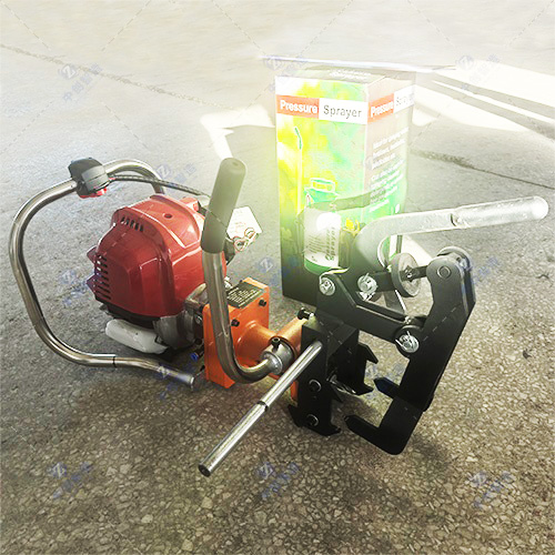 2、先給注水桶打氣加壓(一般在10下左右),將水閥壓下后向前推即為打開狀態,然后啟動汽油機,在各部件工作都無異常的情況下,扳動進給扳把均勻進給,鉆頭芯接觸鋼軌后,冷卻液自動流出對鉆頭冷卻,如沒有冷卻液流出,請檢查注水筒,待故障排除后方可進行鉆孔。