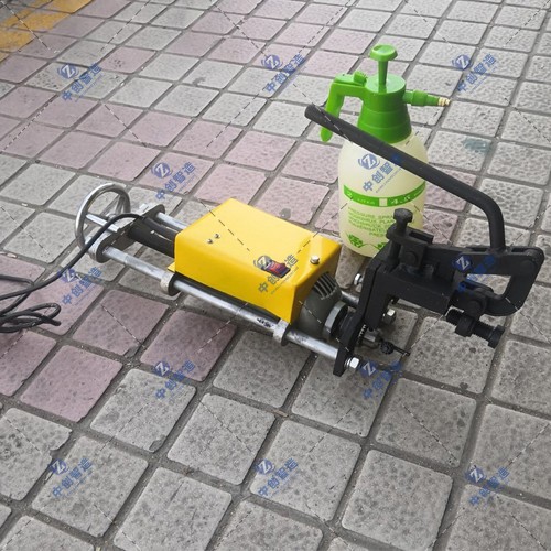 5、孔鉆通后,停止對鉆頭冷卻,逆時(shí)針轉(zhuǎn)動(dòng)扳手,使鉆頭退出鋼軌,關(guān)閉電機(jī)。然后抬起卡緊搬把松開卡軌機(jī)構(gòu),將鉆孔機(jī)、注水桶搬到另一鉆孔位置按相同方法進(jìn)行鉆孔作業(yè)或整機(jī)下道
